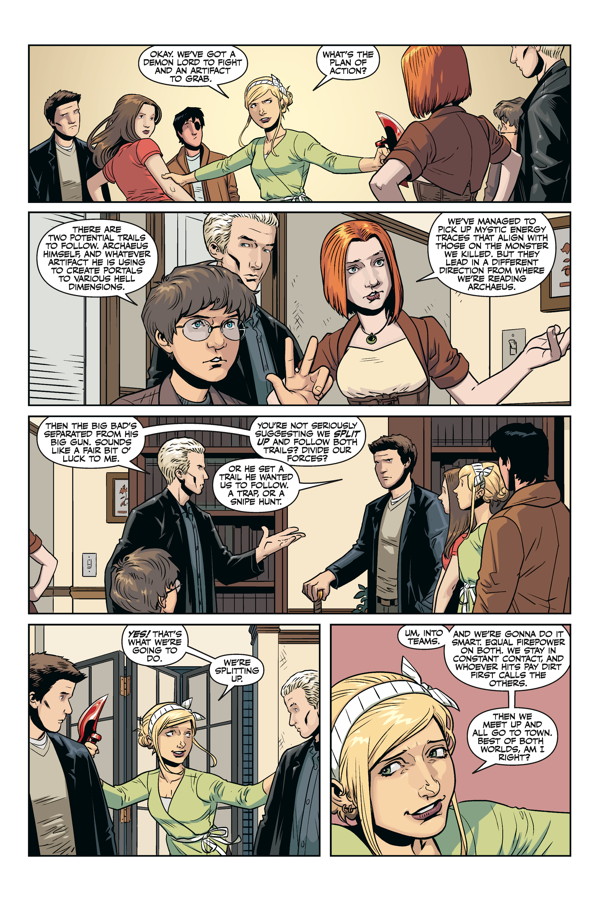Still, the team must put their differences aside, along with that time Angel killed Giles (good times), among other fond memories, to band together, bringing their collective mojo to defeat the evil Archaeus, a demon which has been attempting to control soulful vamps, and rivals for Buffy’s affections, Angel and Spike.