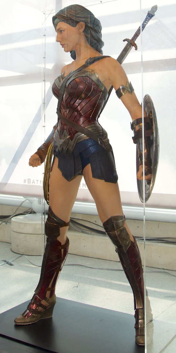 A life size model of Wonder Woman on display at New York Comic Con 2015 for the upcoming Batman v. Superman movie. Photo credit to Peter Parrella at SkeletonPete.com.