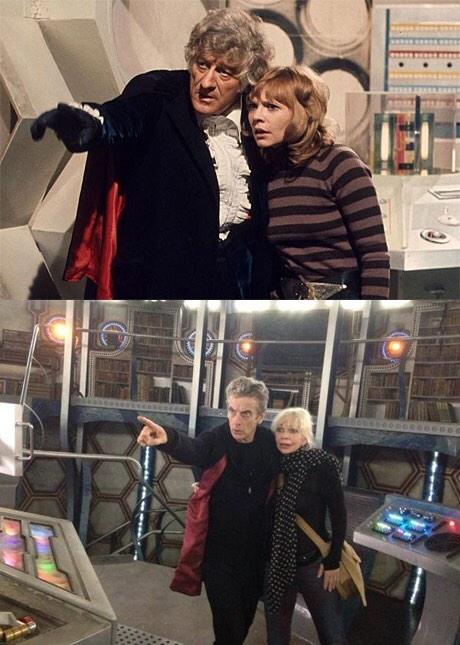 Earlier this week, former Third Doctor (Jon Pertwee) companion Katy Manning, known to fans as UNIT agent Jo Grant, visited the set of Doctor Who. She and current Doctor, Peter Capaldi, had a blast re-enacting some scenes from her time with the series. The 67-year old actress truly enjoyed her time with the 12th Doctor, and it showed, calling him “one of the most charming men I’ve ever met.”